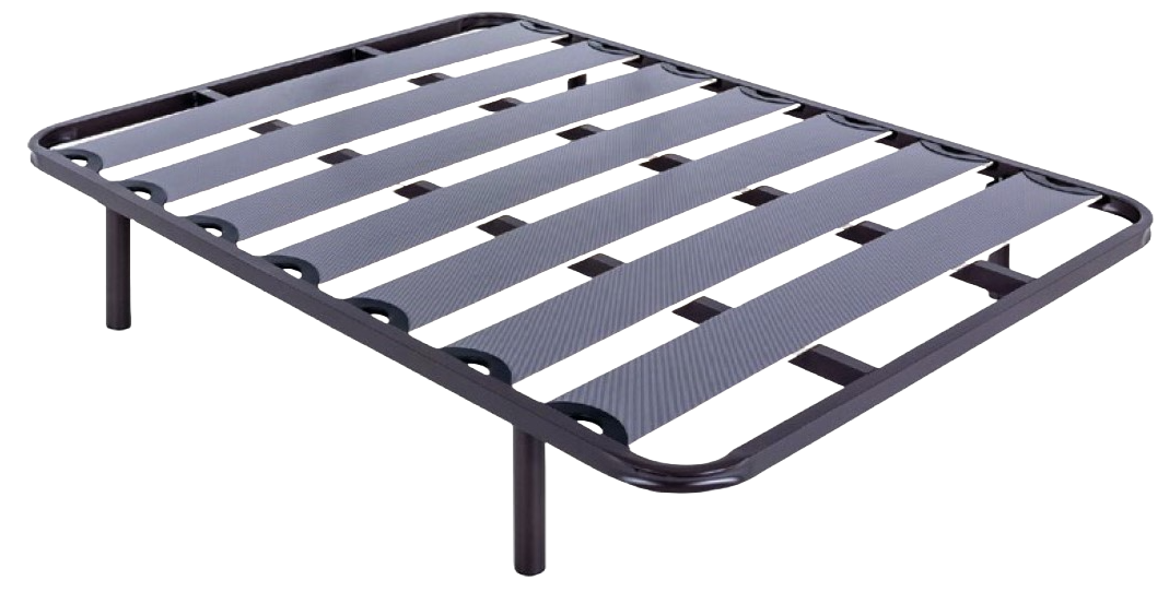 El somier Standard, con su estructura de acero virgen laminado en frío y láminas de madera natural recubiertas con papel grafito, proporciona una base firme, estable y silenciosa. Su diseño robusto asegura durabilidad y estabilidad, incluso en medidas grandes, gracias al refuerzo adicional con patas roscadas.